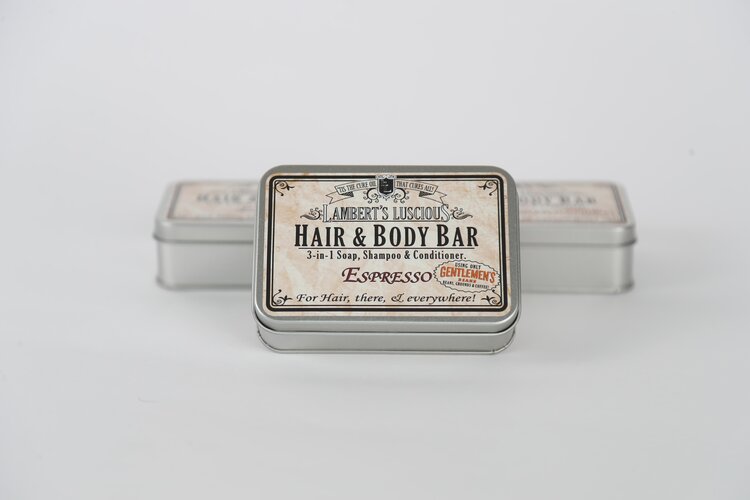 Espresso: Three in one soap, shampoo, conditioner for “Hair, There and Everywhere” with the exfoliating goodness and scent of real coffee.