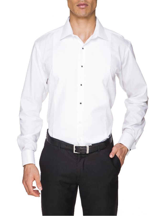Bring timeless tailoring to any occasion in this clean and crisp dinner shirt. This sophisticated shirt features a neat regular collar, traditional pleated French cuffs and a double lined front for enhanced shape and structure.