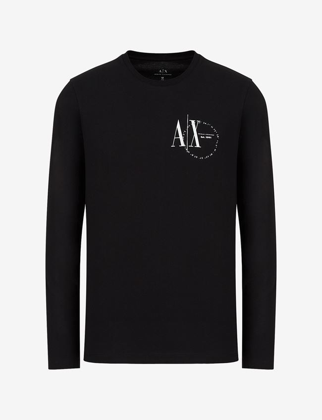 You can’t go wrong with this long sleeved A|X style featuring a contrasting logo.