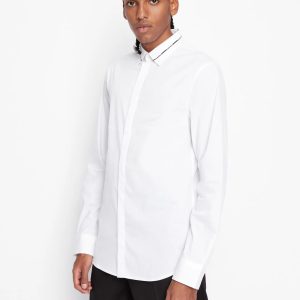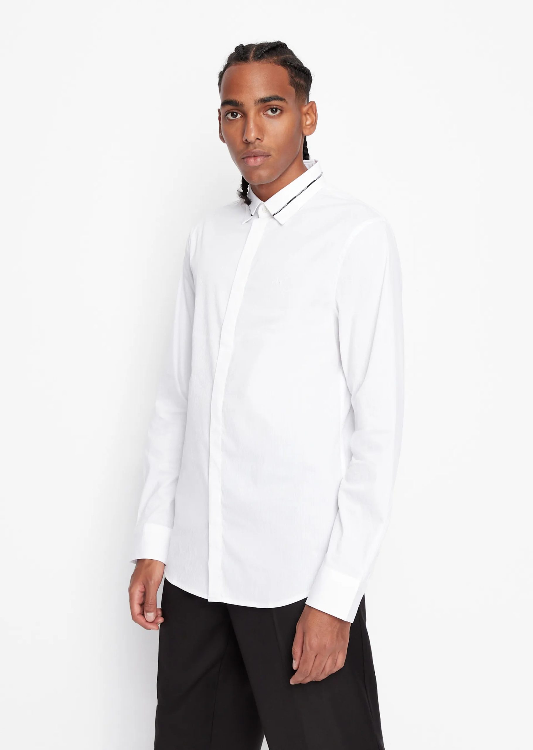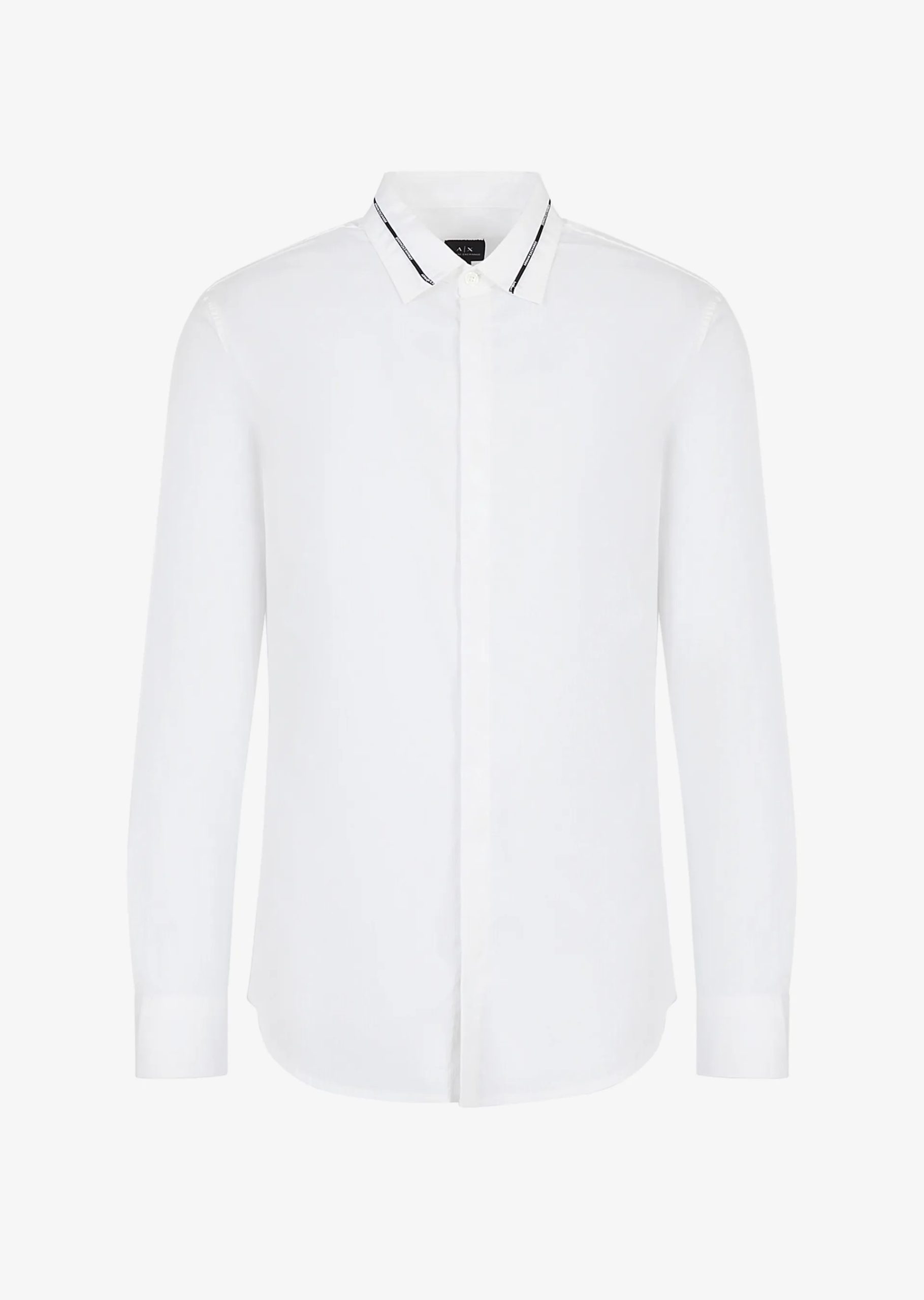 Plain weave Logo design Classic Neckline Long sleeves Buttoned cuffs Button closing