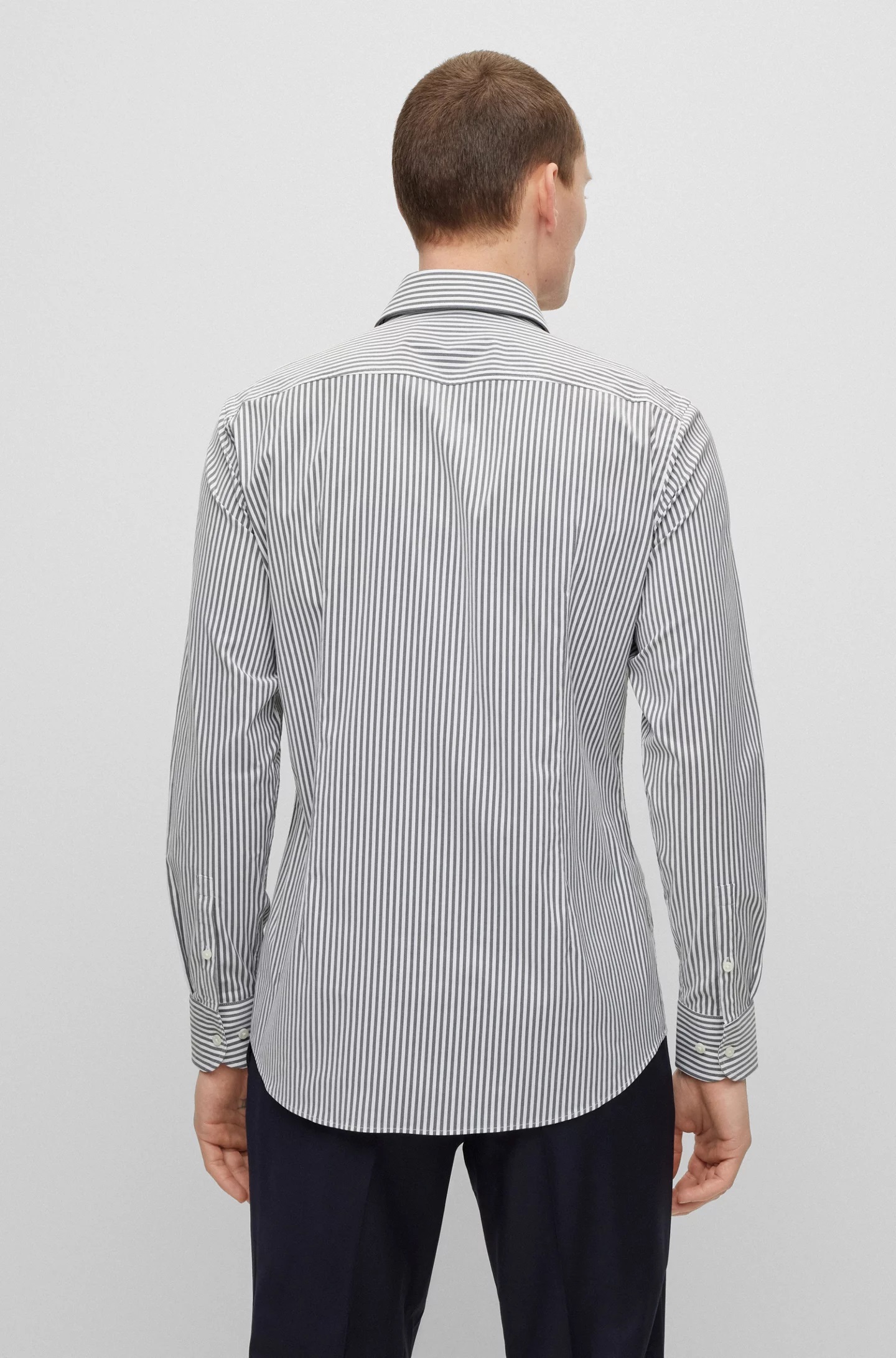 A slim-fitting business shirt by BOSS Menswear in striped performance-stretch fabric for freedom of movement.