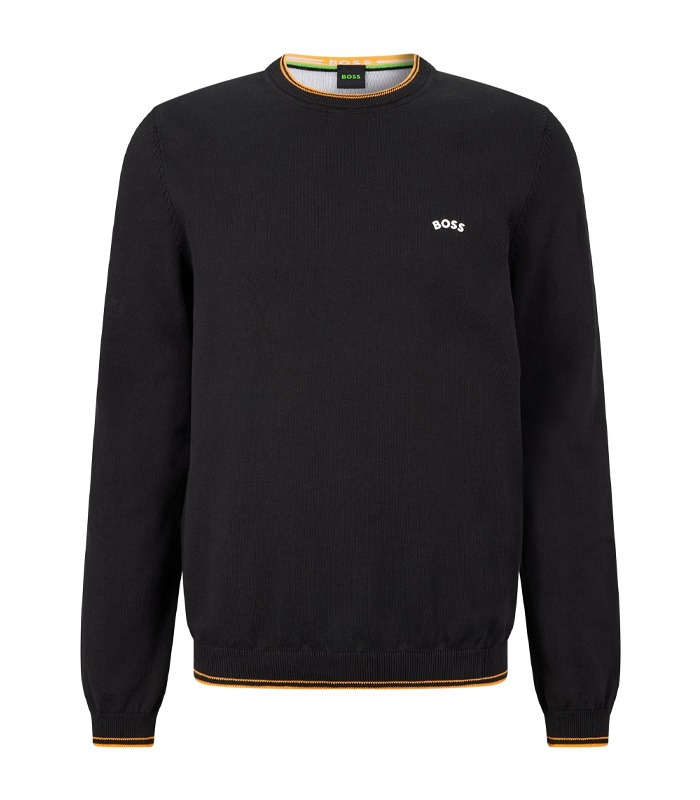 A sporty sweater in a straight fit by BOSS Menswear. Detailed with piping and a curved BOSS logo, this versatile sweater is topped with a crew neckline featuring signature accents at the interior.