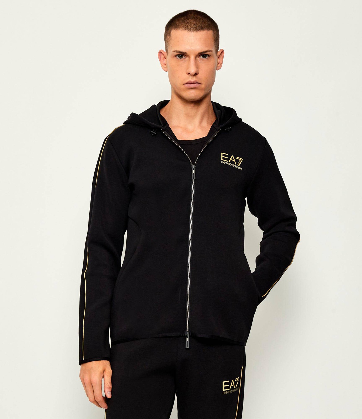 - Contrasting EA7 Logo In Gold On Left Front