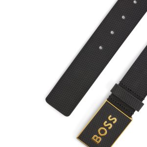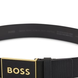 A modern belt by BOSS. Featuring a plaque buckle in a varnished effect, this belt is designed in Italian leather that has been tanned with natural substances. The hardware carries a BOSS logo for a signature finish. For the best fit, we advise ordering a belt one size larger than your waist size. We continuously look for more responsible ways to produce and finish our products. A minimum of 60% of the leather used to make this product has been sourced from certified tanneries.