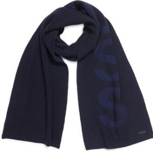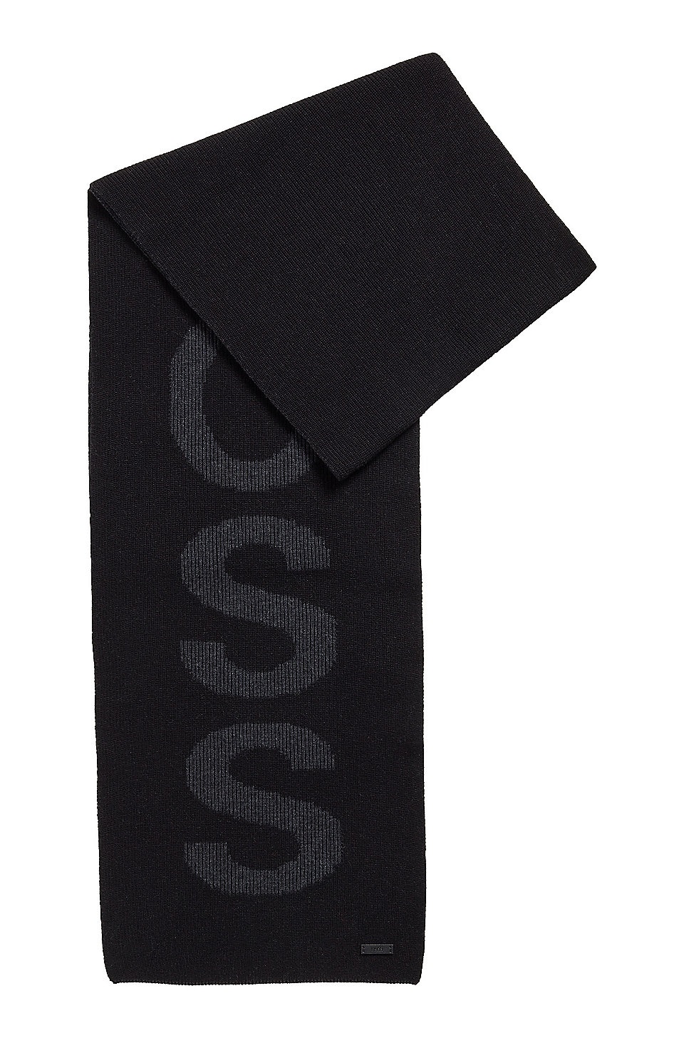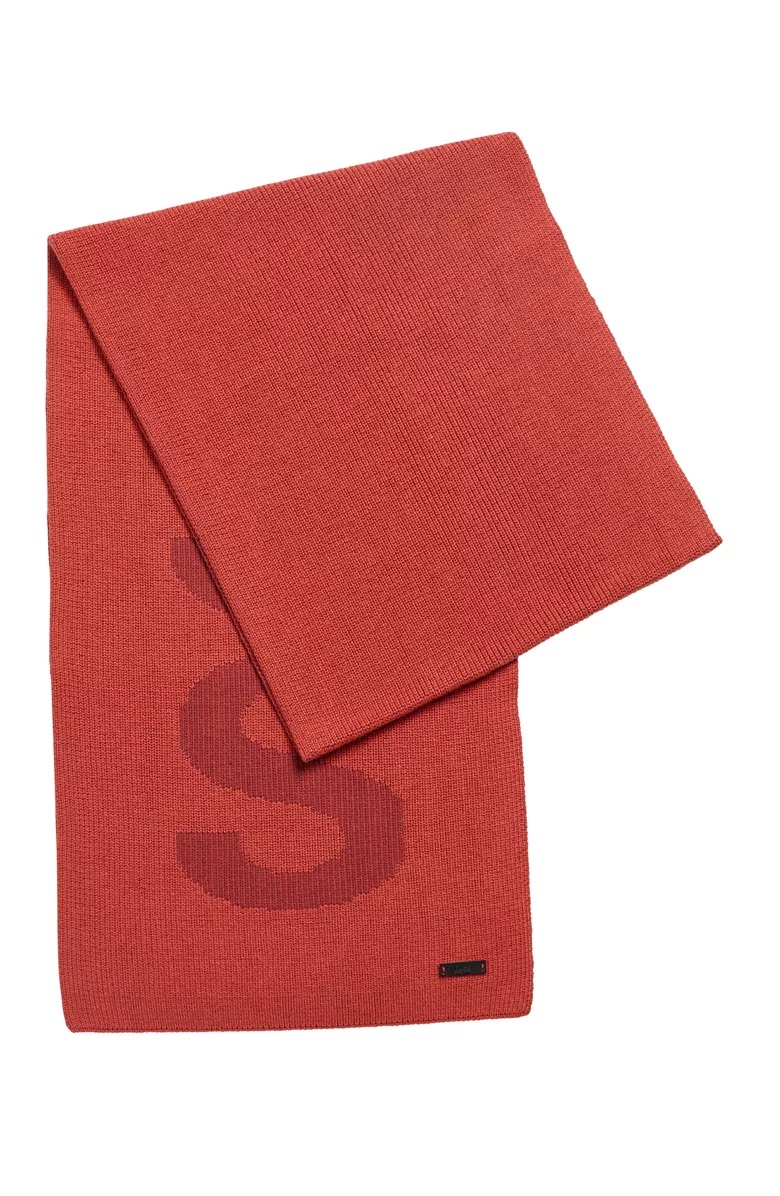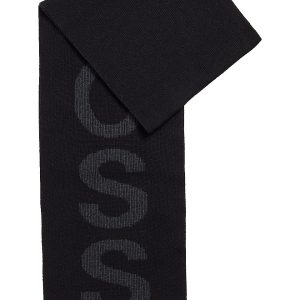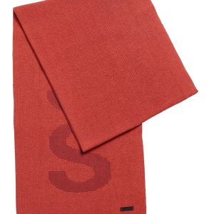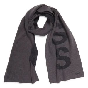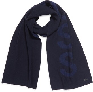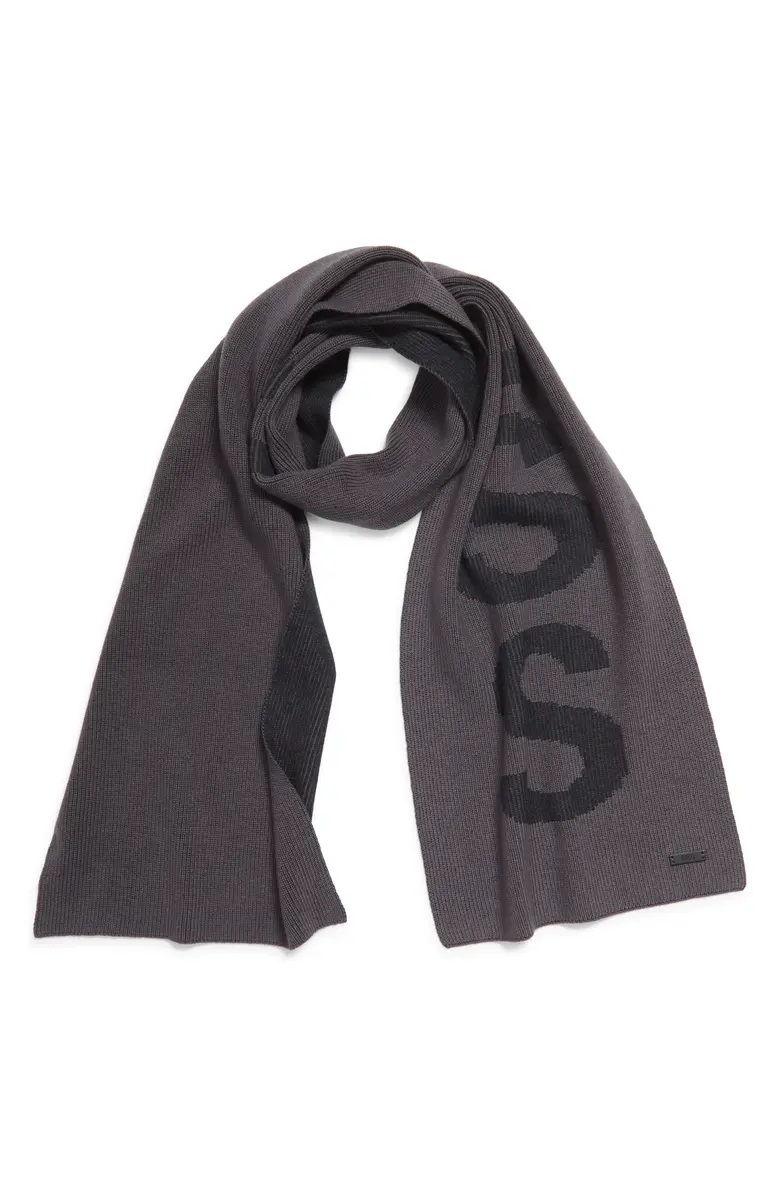 Half-cardigan stitches created the ribbed texture of this cotton-blend scarf branded with distinctive logo text.