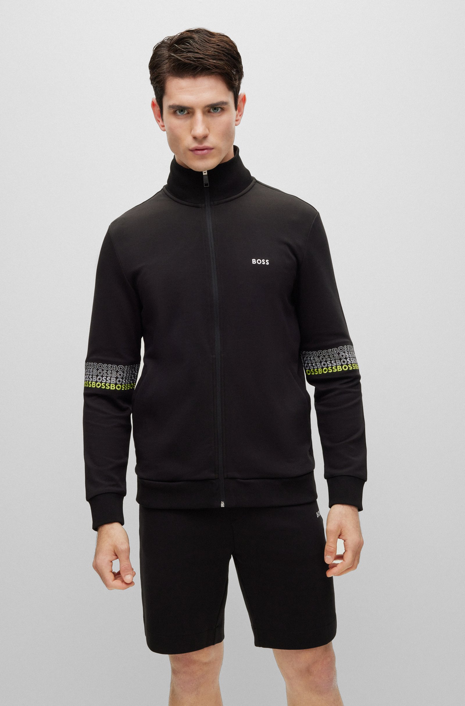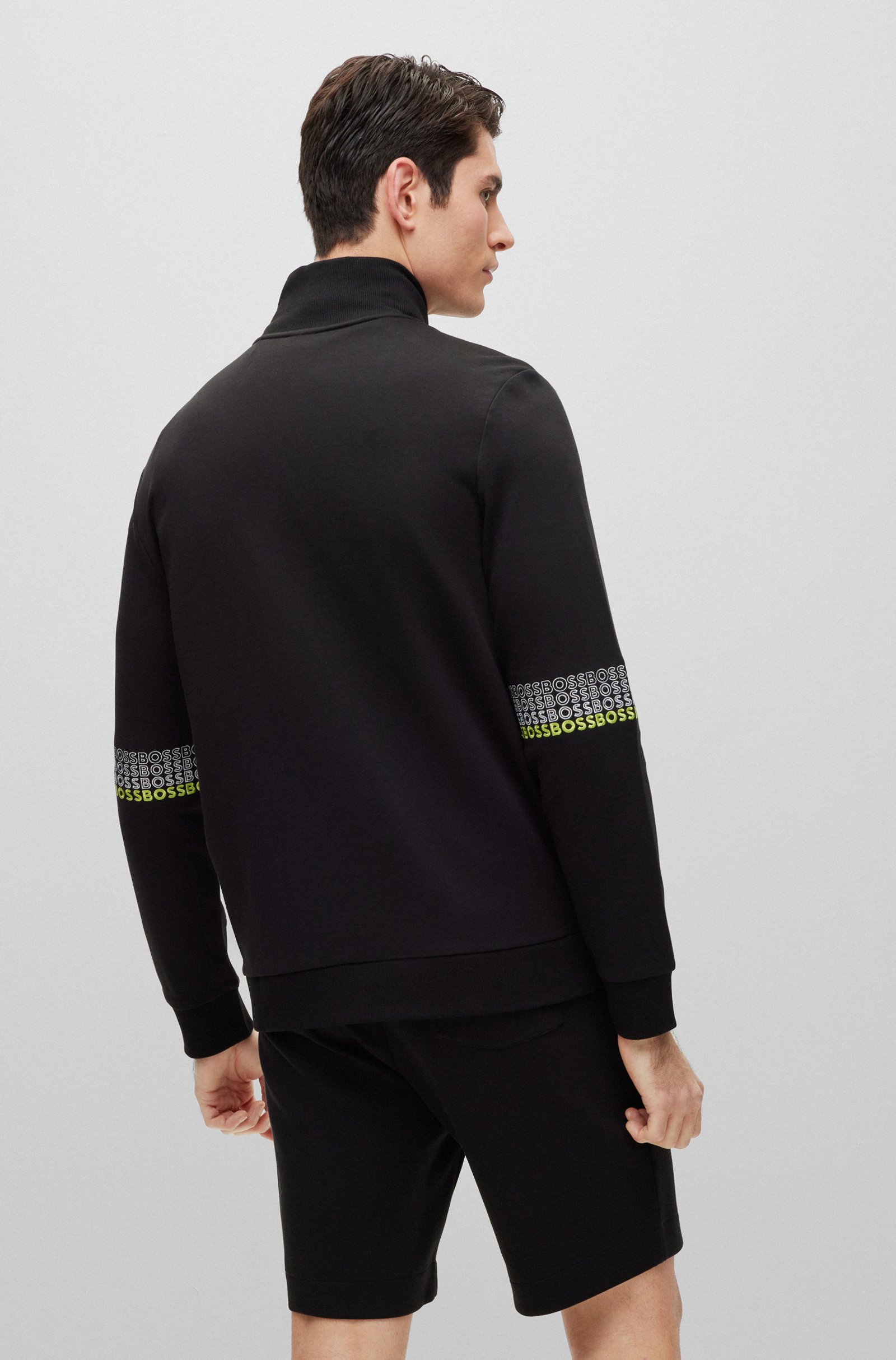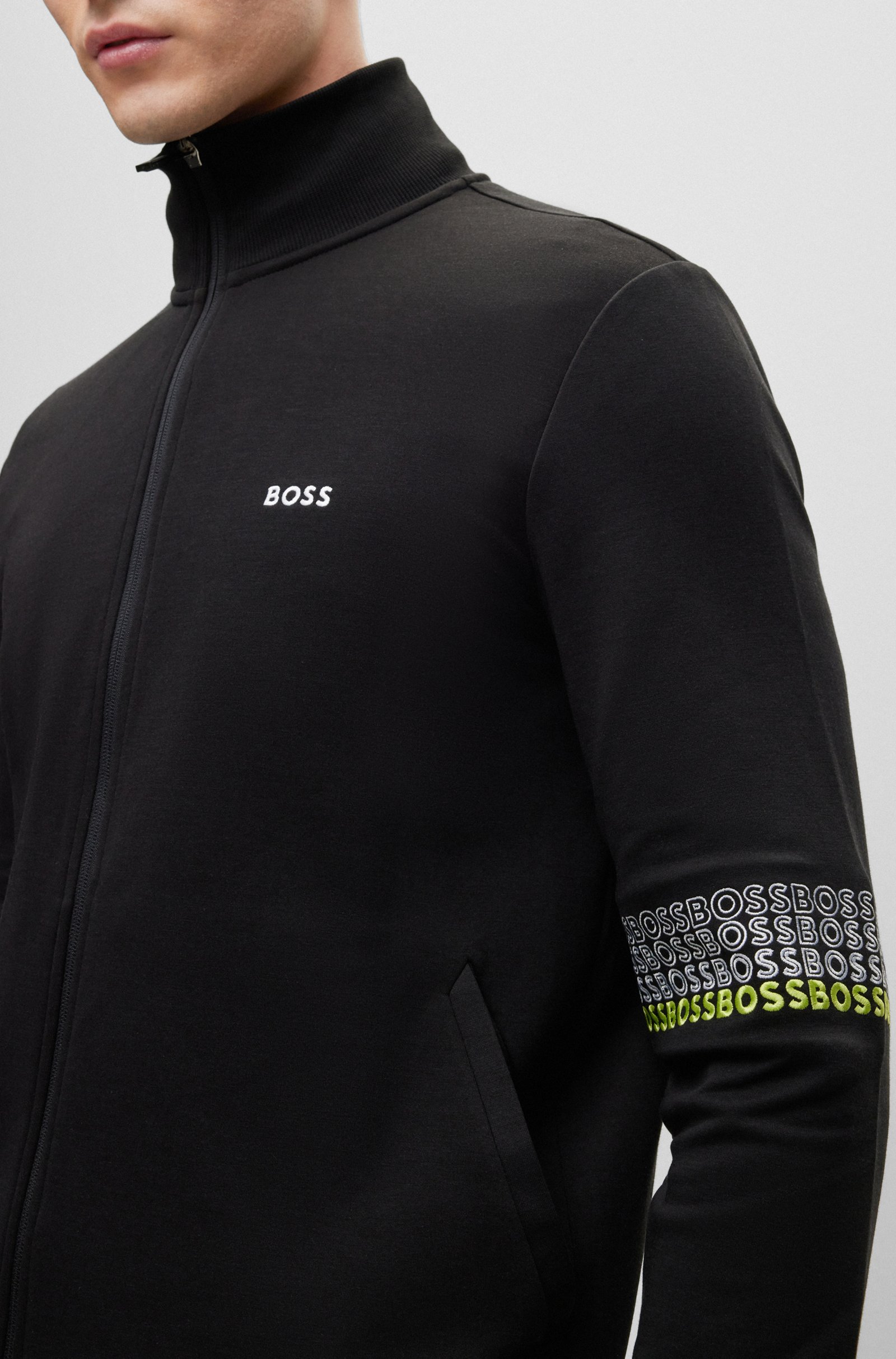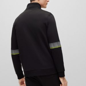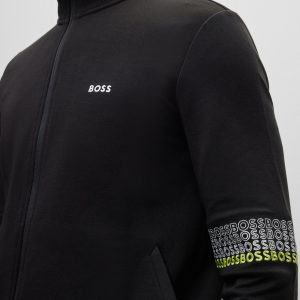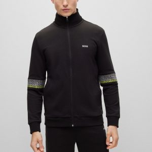 A regular-fit zip-up sweatshirt by BOSS Menswear, designed with contrast branding and embroidered with multi-coloured logos at the sleeves.