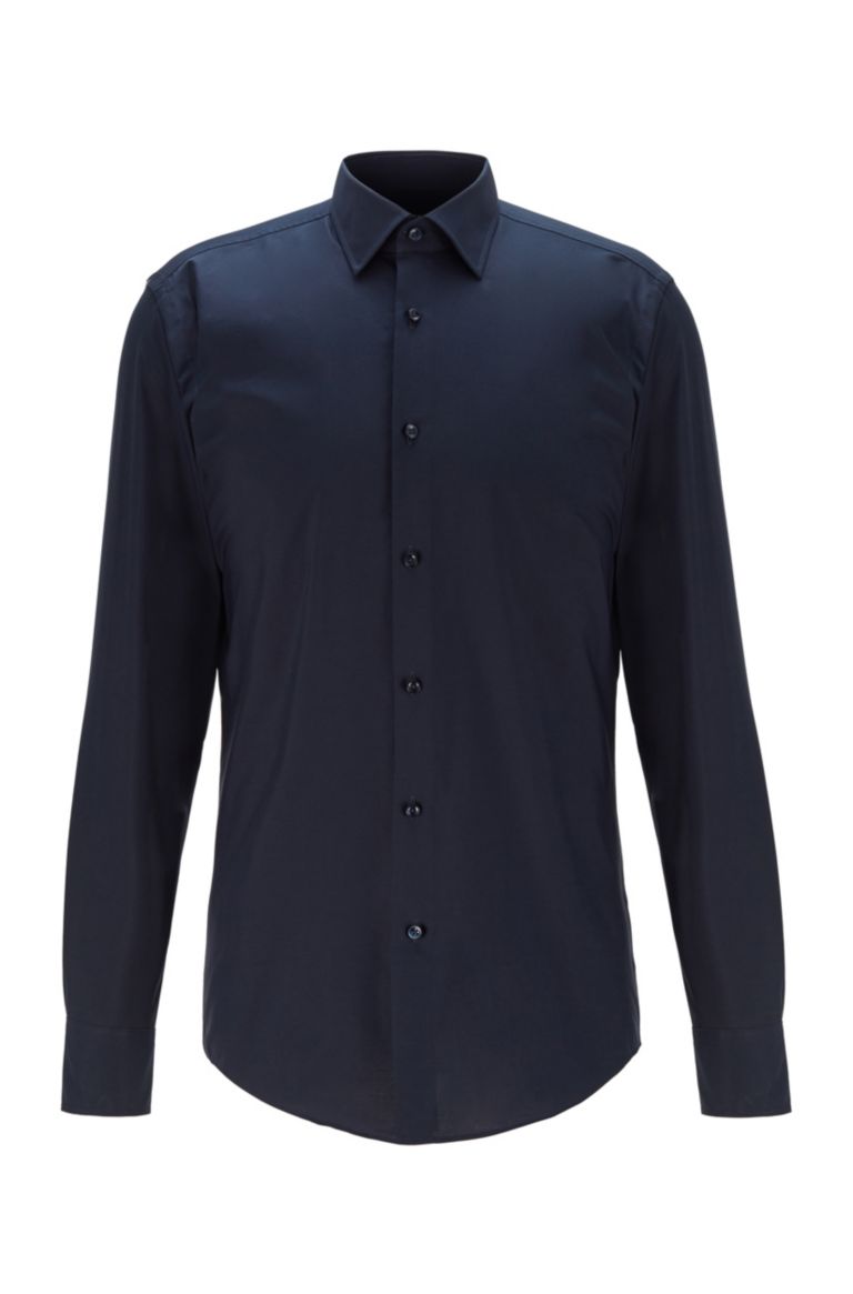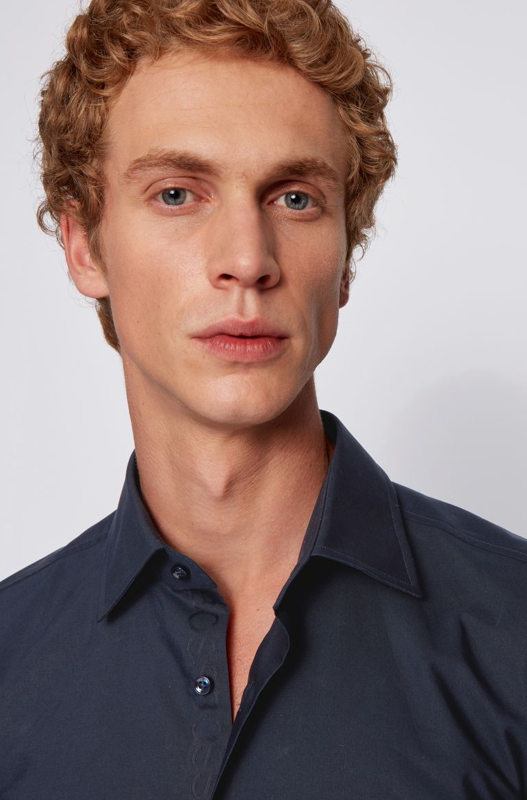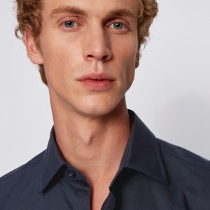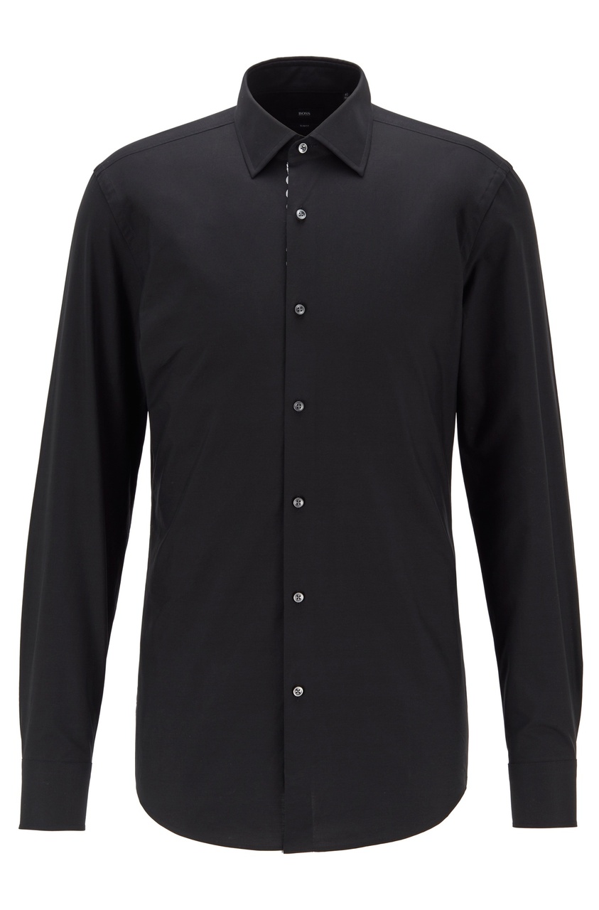 Men’s, plain shirt, from the Boss collection by Hugo Boss. It has a spread collar and inside the placket there is in tone2tone shade the famous logo of HUGO BOSS. A shirt for neat, formal appearances, made of 100% cotton fabric, in slim fit.