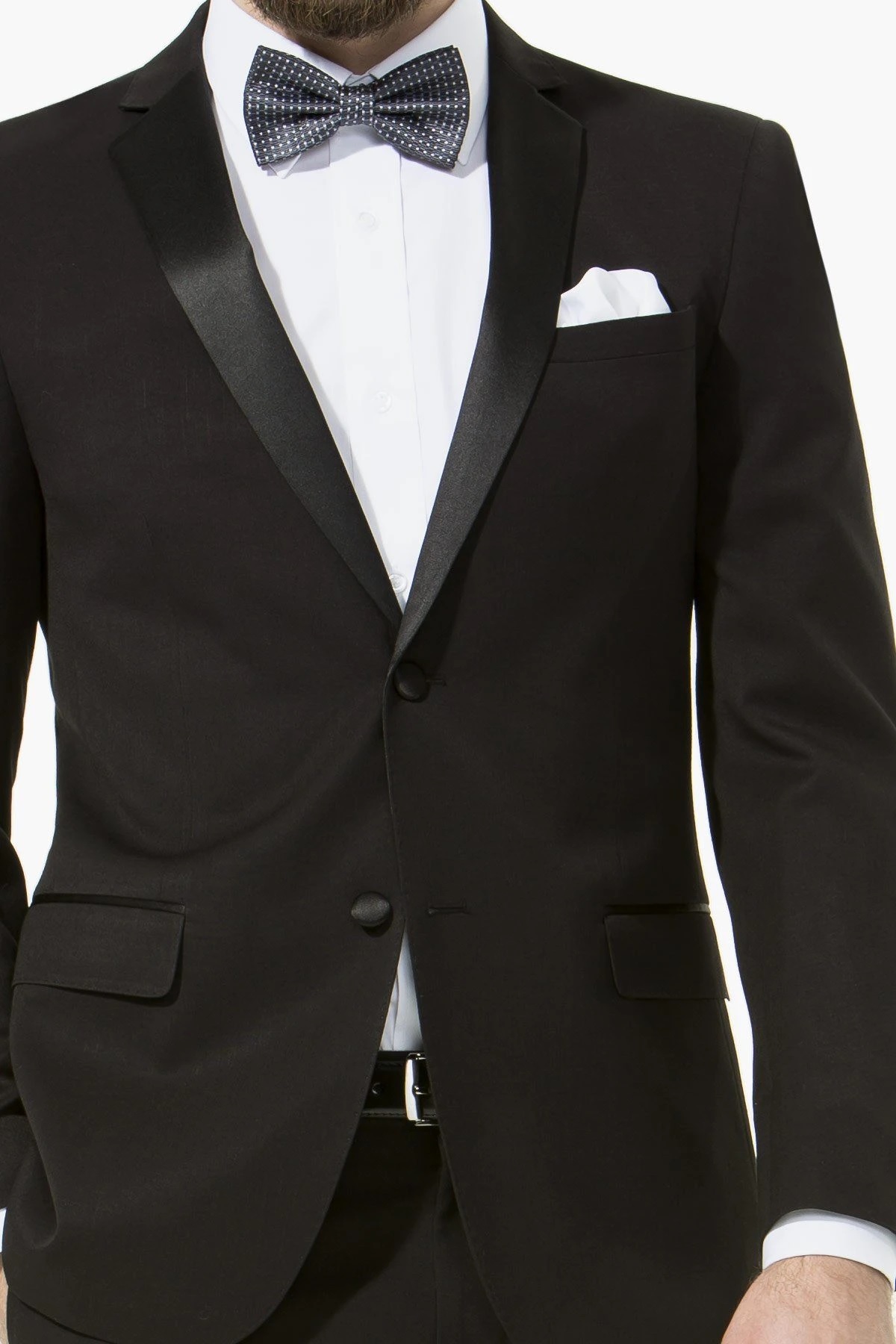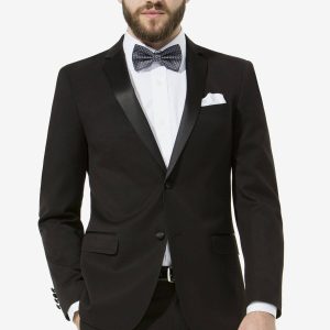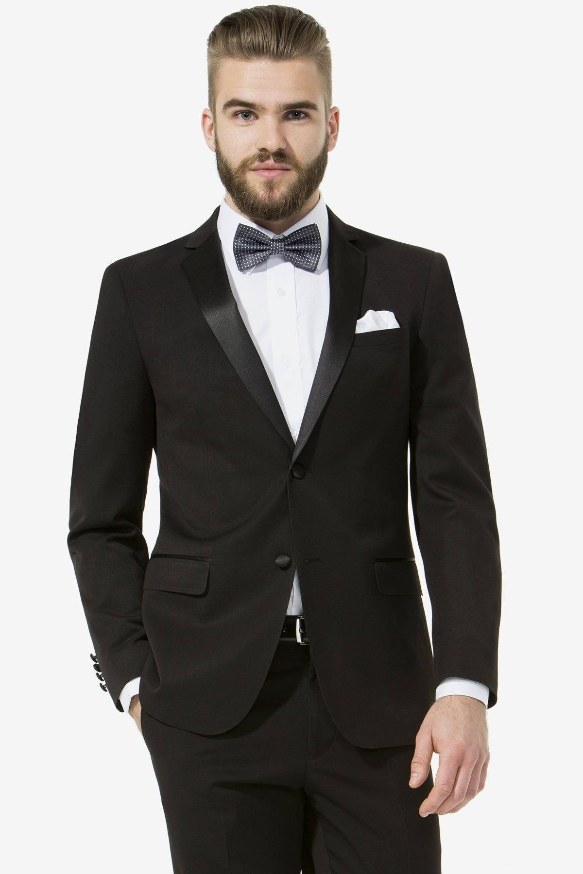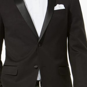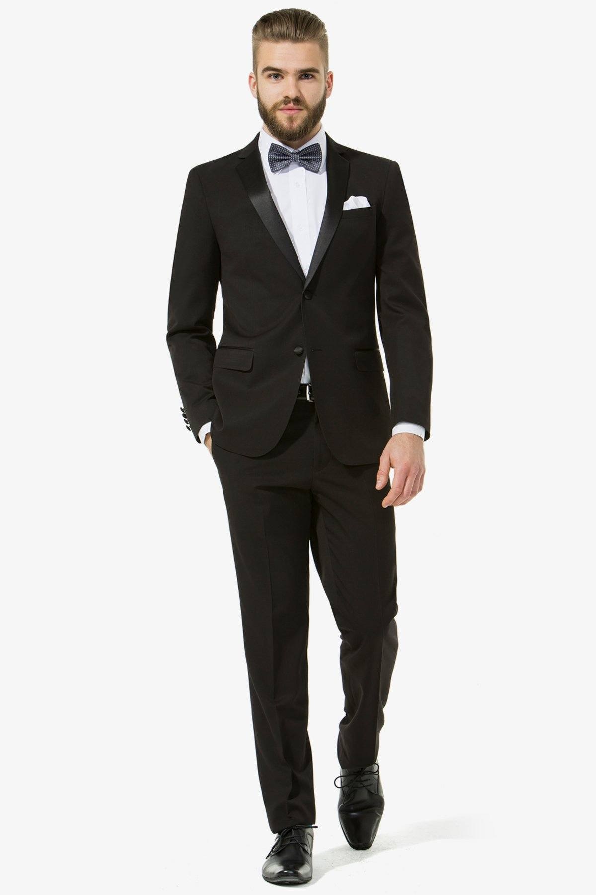Slim fit suit fit for any formal or black tie occasion. Satin lapel with notch for a distinctive black-tie formal event. Great value even for your school formal. Interchange the matching trouser for the perfect fit.