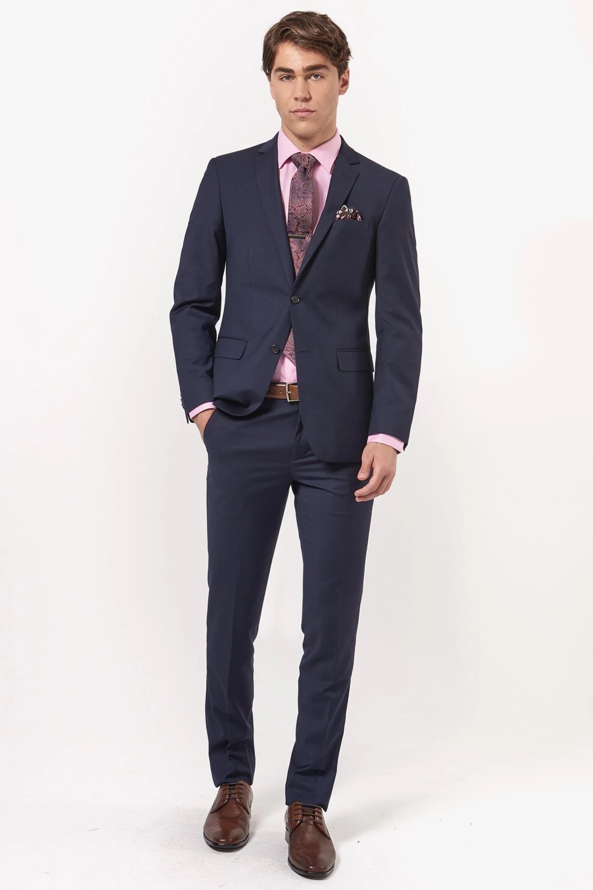 Slim fit trouser. This natural stretch fabric sets you apart from the basics and fits amazingly. Great for the young guy starting out. Interchange the matching jacket for a full suit.