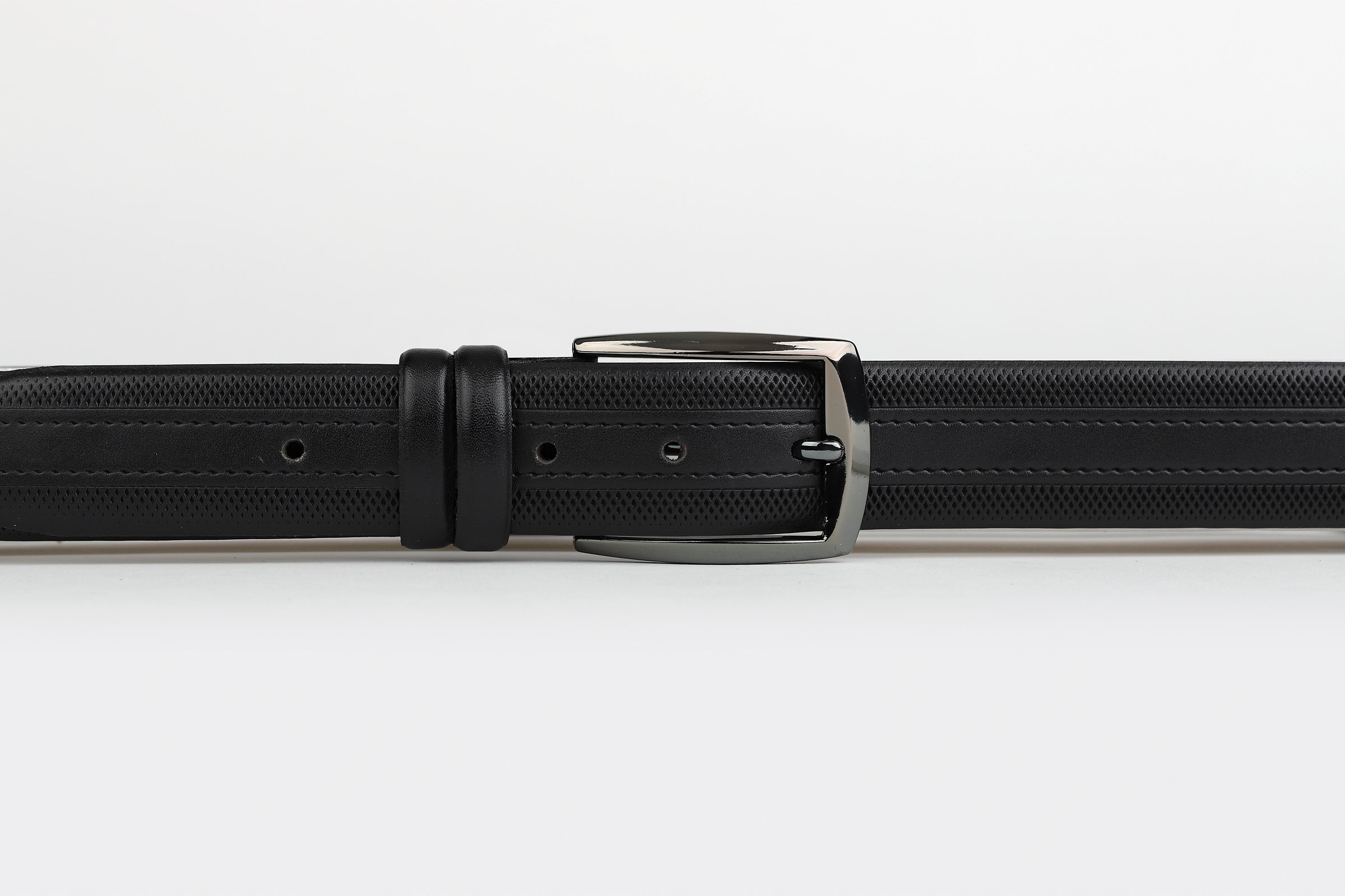 James A’Delin Subtle Stripe Grid Edge Leather Belt