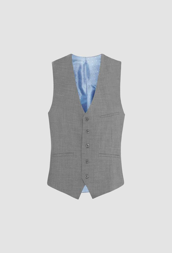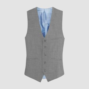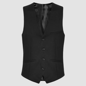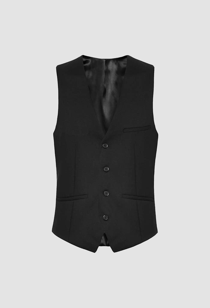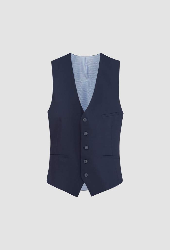 This confidence-booster runs with a skinny fit, front darts and angled hip pockets, turning up a look that’s so sharp it’s dangerous. Notice electric blue doing patterns in the background? That’s a strong, independent vest that don’t need no jacket.