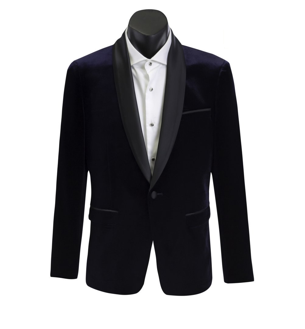 Style: Satin shawl lapel velvet tuxedo jacket